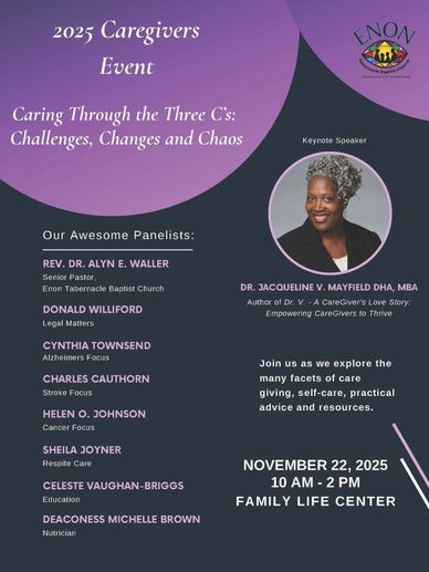 Safely after the pandemic, Enon Tabernacle Baptist Church's Chariots of Light Ministry hosted a CareGiver's event. Dr. V. was honored to be a vendor.